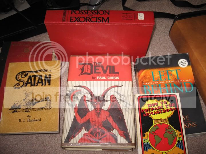 Scumdogg #4207 Posted May 19, 2007 (edited) I got a Sonic the Hedgehog 3 Tiger handheld today in a church rummage sale. I paid $4 total for a big box of stuff including that, some records, and the following books, which i feel are pretty cool for collectors of odd books such as myself: "Left Behind" by Tim LaHaye: I bought the book and two VHS tapes about this in one week, all based on a Simpsons reference. I hope it's worth it. "Satan" by R.I. Humberd "How to Prepare for Armageddon" "The History of the Devil and the Idea of Evil" by Paul Carus. Features over 350 illustrations of the Devil from around the world. Effing sweet. "Possession and Exorcism" by Traugott K. Oesterreich "The Story of Christianity in Japan" by Otis Cary: This copy of the book, dating from 1909, has been in the Library at Yale University, a couple of Theological Seminaries, and a local Baptist Church. I passed on a multivolume set of "The History of the Christian Church" books dating from the mid 1800's, because they were in pretty bad disrepair and i try to limit the amount of fifty pound purchases i make in one day. Church sales always have the best books... Edited May 19, 2007 by Scumdogg Quote Share this post Link to post Share on other sites